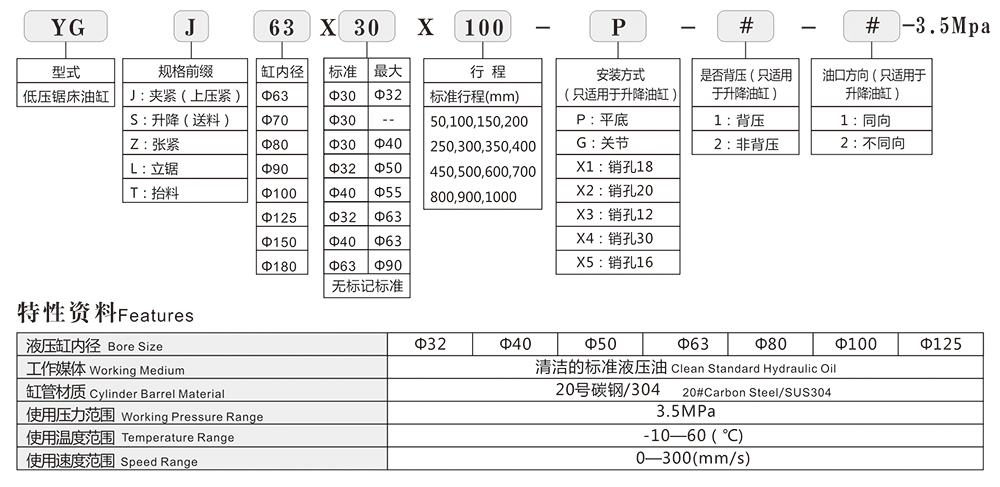 油缸型號說明