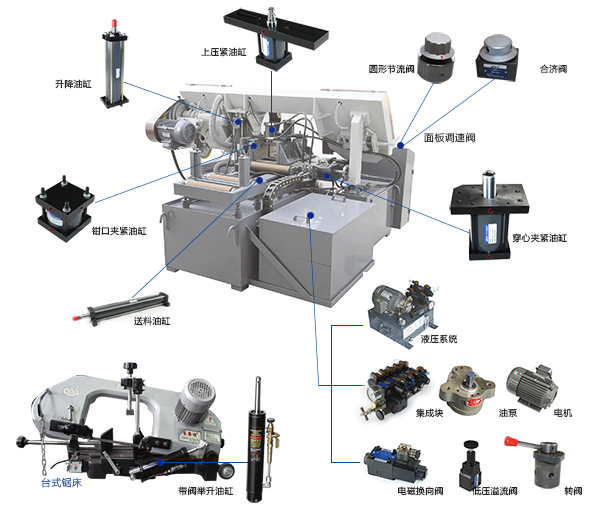 2014年山東最大的一家?guī)т彺补窘?jīng)朋友介紹,并查看了我們的公司網(wǎng)站等相關(guān)信息后,聯(lián)系到我們,希望我們能為他們設(shè)計定做帶鋸床液壓系統(tǒng)配件。因為他們公司帶鋸床主要以出口為主,質(zhì)量要求高,但當(dāng)?shù)夭少彽囊簤号浼|(zhì)量并不是很穩(wěn)定,給他們售后也帶來了諸多不便。而他們主要的質(zhì)量問題就出在升降油缸。帶鋸床液壓缸中,最關(guān)鍵的就是升降液壓缸,如材料或工藝沒達到要求或者安裝不注意出現(xiàn)問題,則升降機構(gòu)會出現(xiàn)內(nèi)泄露機器自動會下降現(xiàn)象,抖動現(xiàn)象等。缸筒材料若是未經(jīng)過珩磨或滾壓處理的無縫鋼管,內(nèi)壁光潔度不夠,會產(chǎn)生活塞、缸筒、密封件配合不良等各種問題產(chǎn)生。而壁厚很薄的缸筒,當(dāng)液壓油溫高了,缸筒容易熱脹變形,導(dǎo)致漏油,使用壽命較低;活塞桿作為油缸主要原材料之一,行業(yè)標(biāo)準(zhǔn)鍍鉻層厚度是2~3絲,部分油缸廠家為降低成本,會使用1絲不到的活塞桿,短期看不到問題,但是大大降低油缸使用壽命。