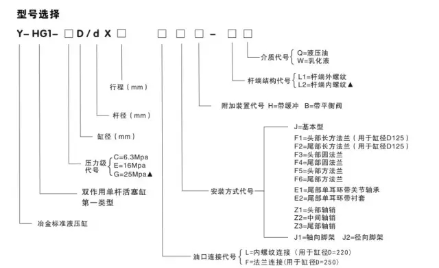4)按照以上三條,可按照以下YHG1油缸型號說明,明確您需要的型號;