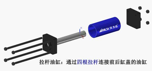 拉桿液壓缸靠螺絲桿連接前后缸蓋,小缸徑時為四根螺絲桿,大缸徑會加多螺絲桿的數量來保證油缸的耐壓性,比如6根、16根,甚至20根。